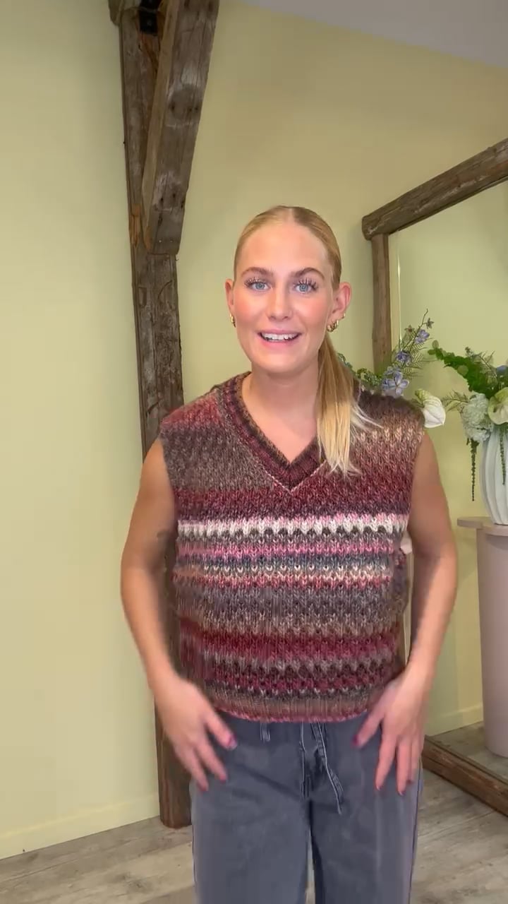 En super lækker strikket vest fra Noella i den flotteste farveblanding! Denne vest er dejlig varm og i en lækker kvalitet, som er til at have på dagen lang! Den kan med fordel bruges under en skjorte eller en t-shirt.