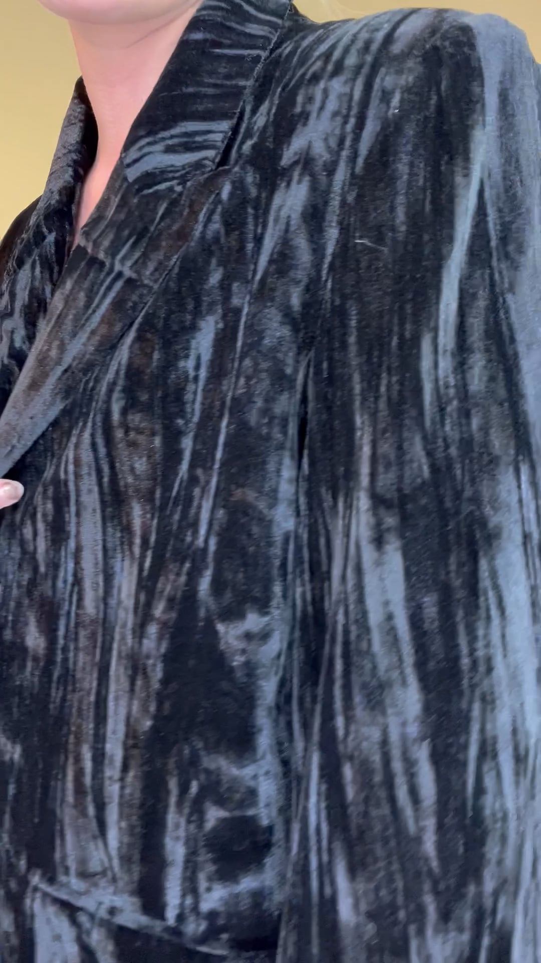 Den fineste blazer fra NORR i sort velour! Blazeren lukkes med to kapper foran og har to lommer, som kan sprættes op. Blazeren har en rummelig pasform og har matchende bukser til. Et oplagt klassisk smukt sæt til de kommende fester.