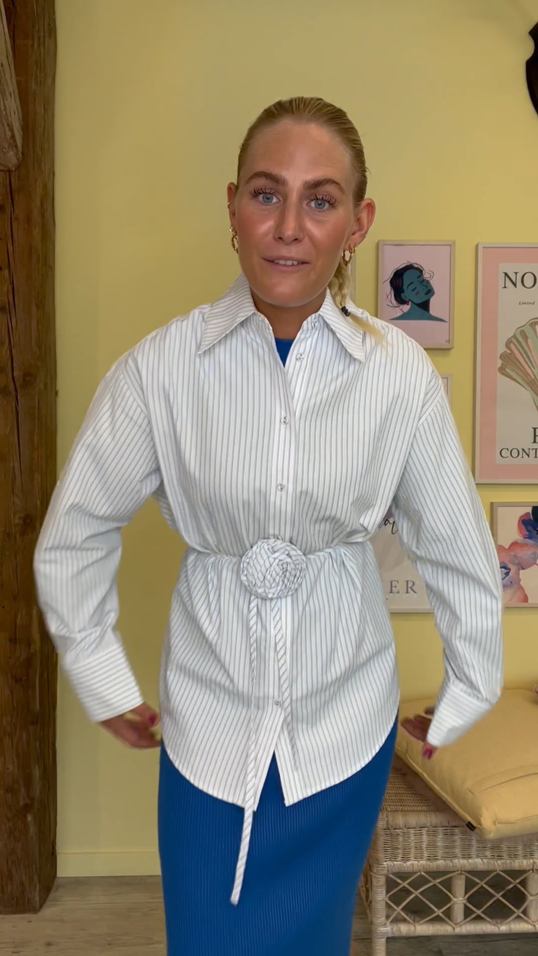 Super flot skjorte fra NORR. Skjorten, i hvid med lyseblå nålestrib, knappes lige ned fortil og er klart ammevenlig! Som feminin detalje har der et aftageligt bindebånd, som kan sidde i taljen og give mere figur, men dte kan også sagtens anvendes som sej accessories til dit outfit! Style den med et par jeans til hverdag og en fin nederdel til de mere festlige anledninger.