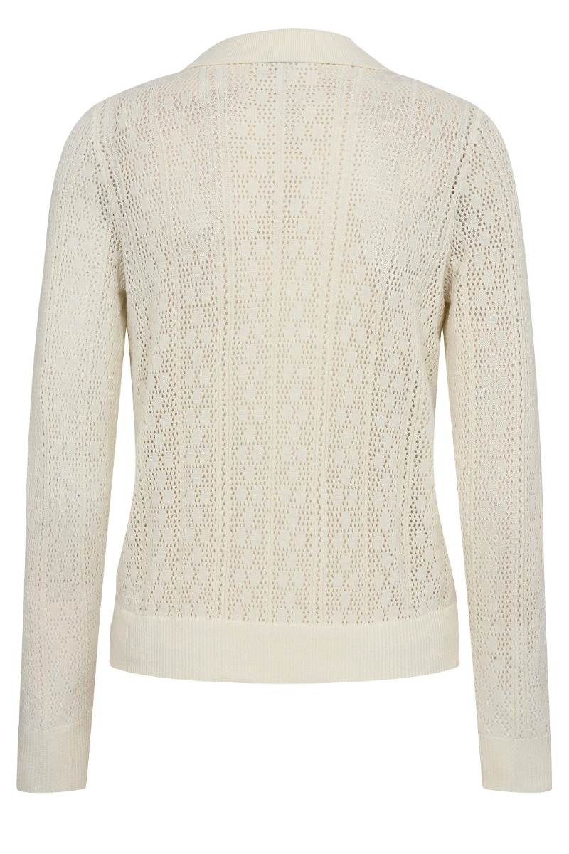 En smuk bluse fra Nümph er i transparent print i en knækket hvid farve. Den er som sagt gennemsigtig og derfor anbefaler vi at du bruger en bluse eller top under. Den er i dette polo look som er en kæmpe trend denne sæson. Nem til både jeans og nederdel.