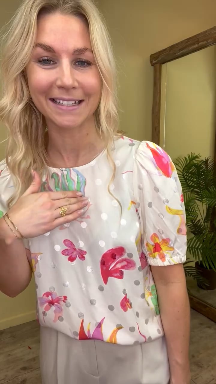 En fin bluse fra Nümph i et skønt sommerprint er lige landet til denne sæson. Den er løs i pasformen og kraftig i kvaliteten. Derudover lukkes den i nakken med en simpel knap og passer fint sammen med jeans eller til et par shorts. Den er har korte puf ærmer som giver et fint og feminint udtryk.