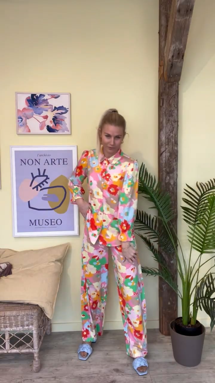 Ej se lige de skønneste blomsterprintet bukser fra Nümph! De har et løstsiddende snit med elastikkant i taljen og lommer i begge sider. Man bliver glad i låget af at kigge på de skønne farver! Bukserne er oplagte at style med den matchende skjorte eller en oversized blazer.