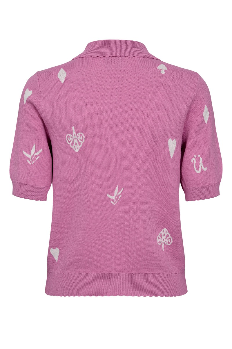 En sød cardigan i en helt let strik kvalitet med korte ærmer og finde figurer vævet ind. Den er fra Nümph og har derfor også de feminine detaljer med flæser ved ærmer og den lette figursyning. Den er ammevenlig og nem at bruge til hverdag.
