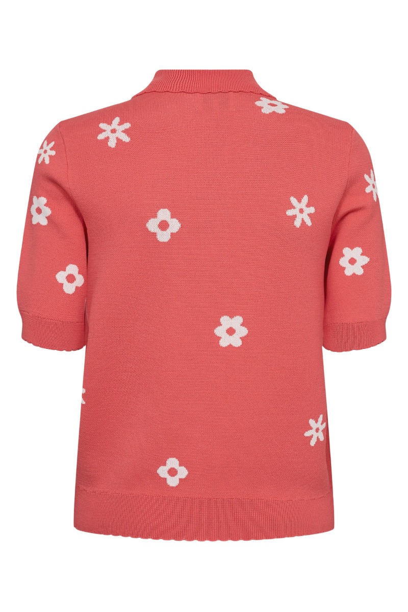 En sød cardigan i en helt let strik kvalitet med korte ærmer og fine blomster figurer vævet ind. Den er fra Nümph og har derfor også de feminine detaljer med flæser ved ærmer og den lette figursyning. Den er ammevenlig og nem at bruge til hverdag.