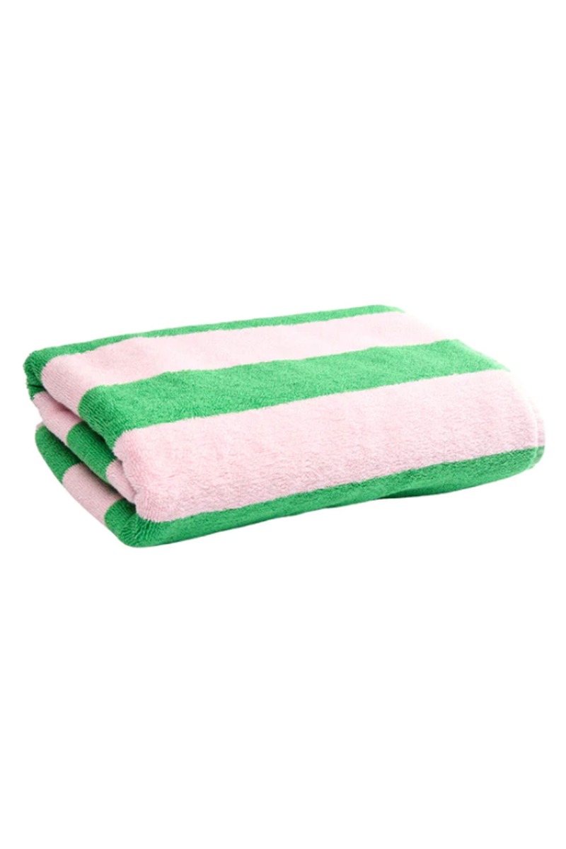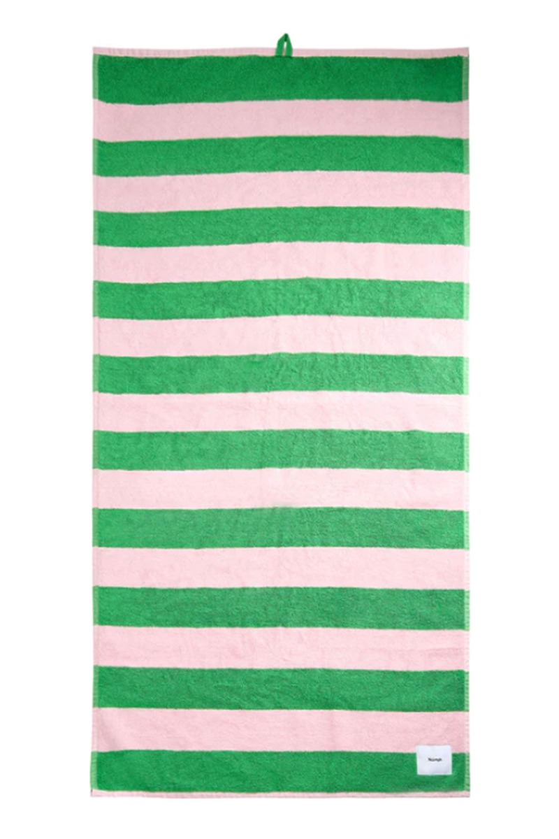 Super cool og lækkert håndklæde i rosa og grøn fra Nümph, Håndklædet er i den blødeste bomuldskvalitet og måler 72x147 cm. Perfekt at tage med i strandtasken når du skal på stranden.