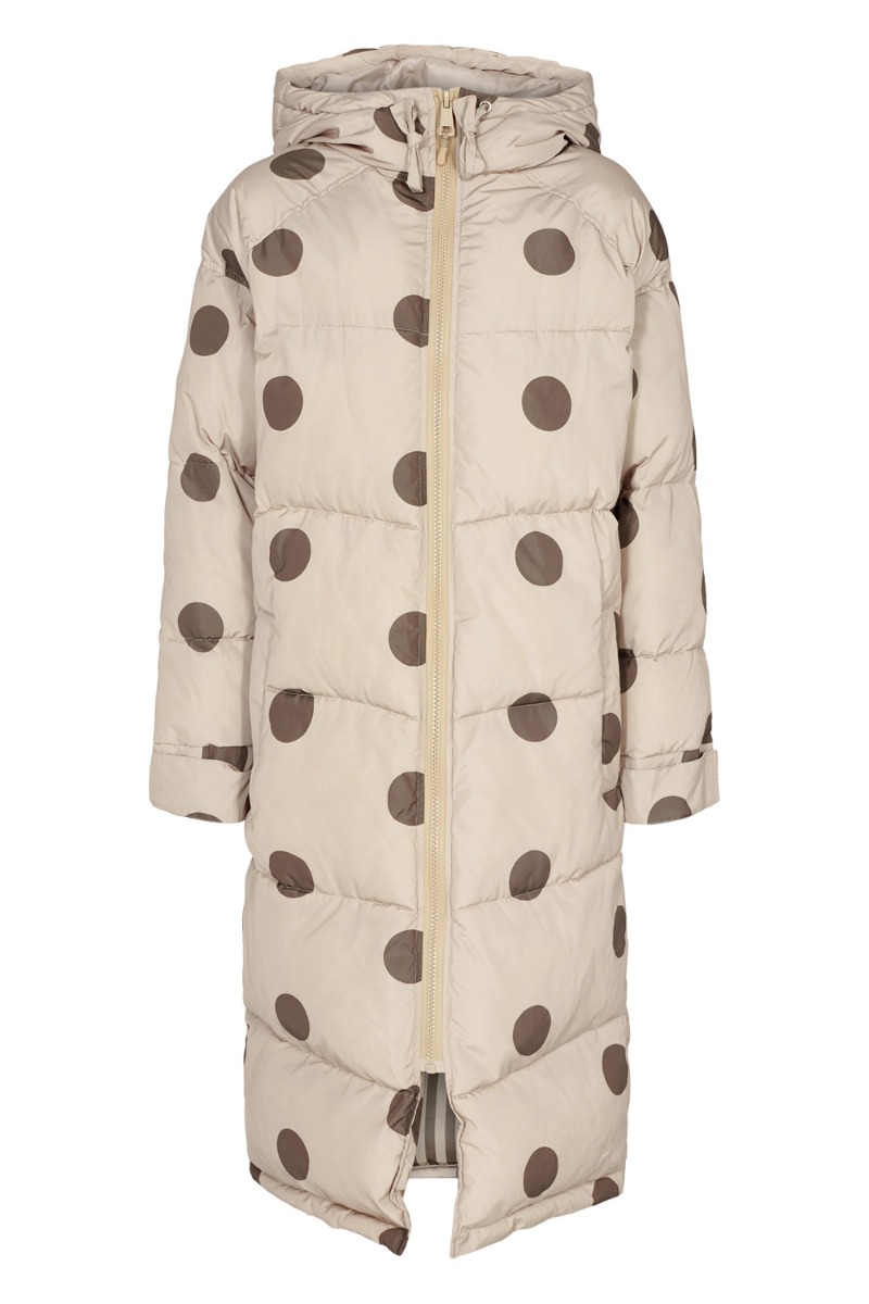 Vi KNUSELSKER virkelig de nye vinterjakker fra Nümph som giver så meget LYKKE! Bundfarven er beige med brune prikker og skaber virkelig det fineste udtryk. Den lukkes foran med lynlås og har monteret hætte der kan justeres. De lange ærmer har skjult ribkant ved håndleddet der kan holde kulden ude. Derudover er jakken designet med slids i siderne som kan knappes til. Style den med en støvle og vores elskede Mads Nørgaard hue for et sejt vinterlook.