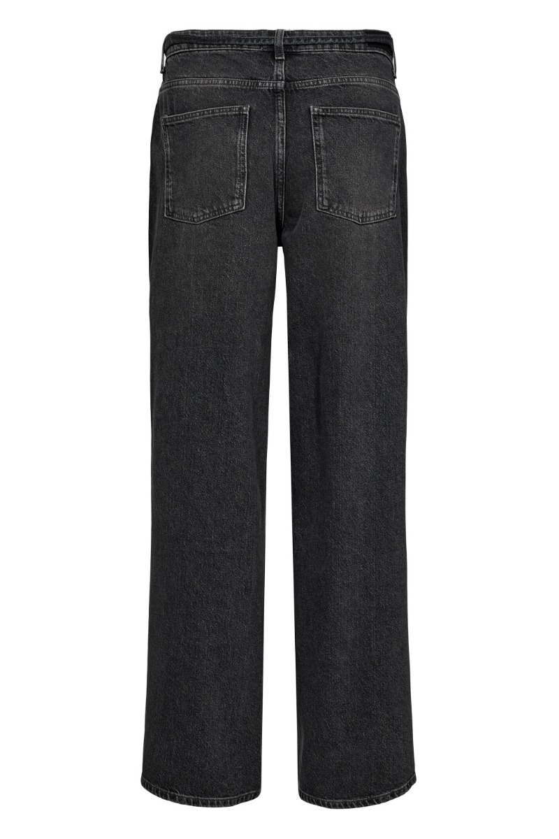 Bukser fra Nümph. Disse bukser har en flot pasform og falder pænt langs benene. Bukserne har en mørkegrå farve i denim. Style dem evt. til simple overdele til hverdag.