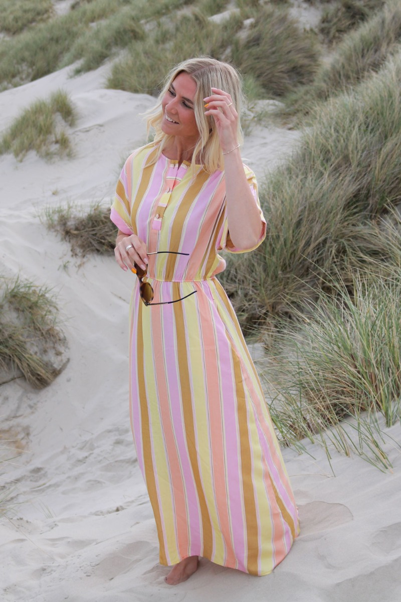 Se nu lige denne smukke kjole fra Nümph i de skønneste nuancer. Den falder helt fantastisk i det letteste materiale med elastik i taljen. Den har tre stofbetrukket knapper foran og et lille opsmøget t-shirtærme. Stylle kjolen med en sommersandal eller en smuk stilet.