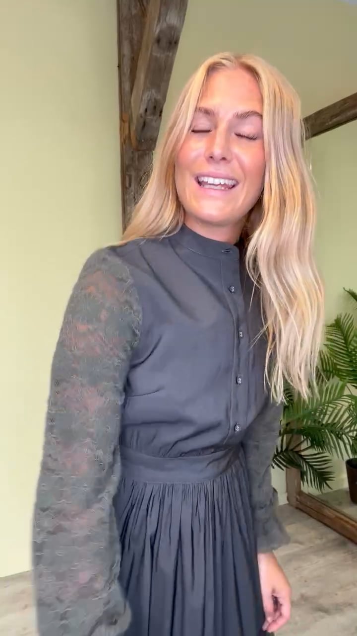 En utroligt smuk kjole fra Nümph i et meget flatterende og feminint snit. Kjolen går ind i taljen og bagpå er der elastik. Med sine smukke detaljerede ærmer og bund i den fluffy kvalitet, er der en flot sammenhæng og harmoni i kjolen.