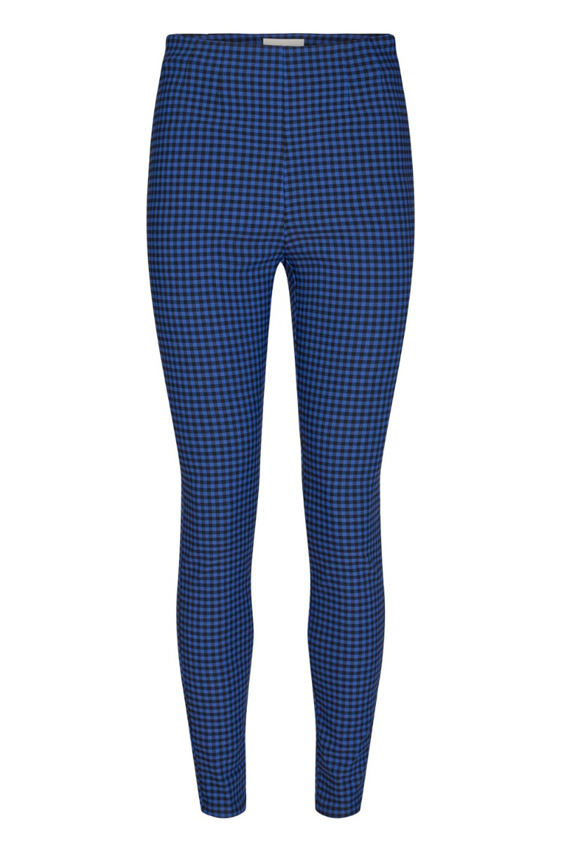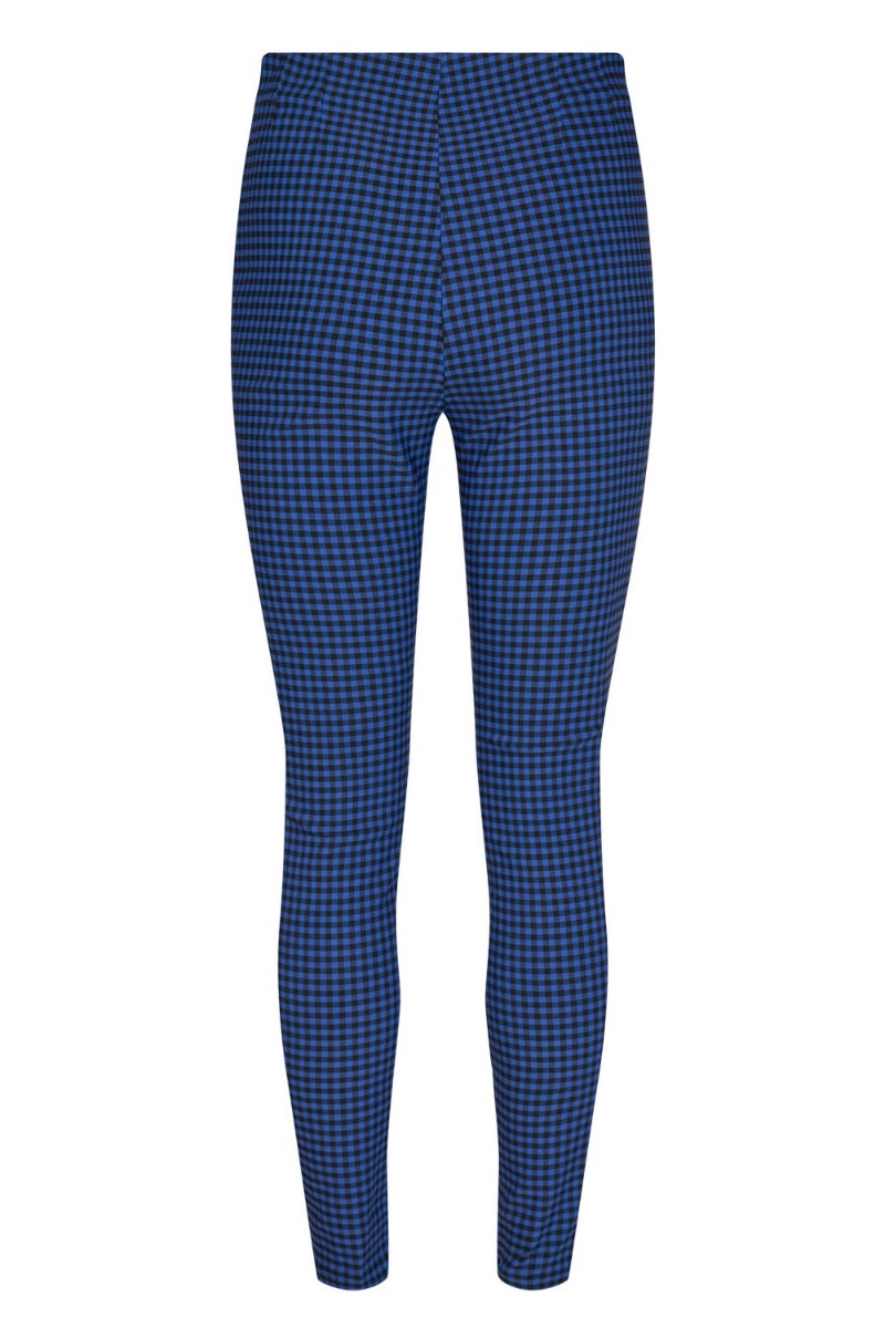 Blå ternet leggings fra Nümph i et blødt materiale med stretch. Disse bukser føles som leggings og har fast linning med en skjult lynlås i siden. De er tætsiddende og super cool at tilføje under dine kjoler eller med en oversize skjorte til.