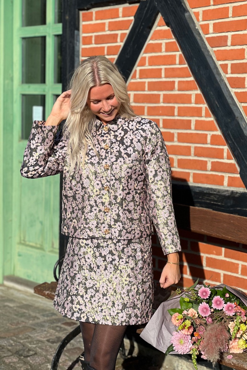 Den smukkeste nederdel fra Nümph er kommet i et endnu smukkere lilla mønster. Den er i kraftig materiale og har bæltestropper i taljen. Den lukkes også bagpå med en fin lynlås som markeres med en lille snor. Den er fin sammen med en simpel t-shirt eller en skjorte.