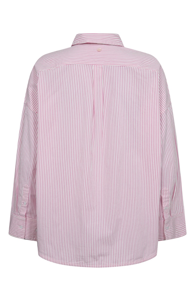 Den perfekte skjorte til pink-elskeren er kommet på shoppen. Denne skjorte fra Nümph kommer i et flot stribet design i pink og hvid med en stor paliet lomme ved det ene bryst. Lommen er en mega fin detalje som giver det ekstra pift til skjorten. Skjorten har brede ærmer og knapper hele vejen ned.