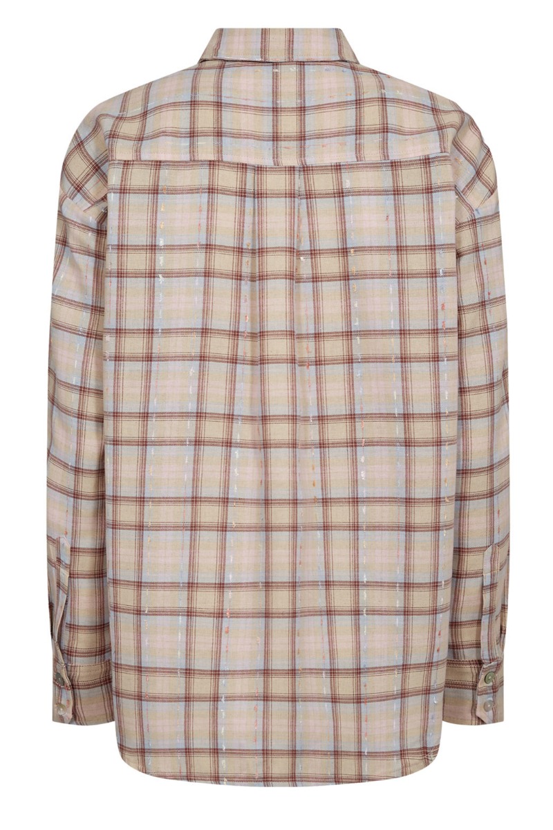 Denne ternede skjorte fra Nümph har et afslappet og moderne udtryk med et klassisk checkmønster i bløde beige- og lyseblå nuancer, der gør den nem at style til mange outfits. Modellen har en løs pasform med klassisk skjortekrave, lange ærmer og gennemknapning foran, hvilket giver et tidløst look med masser af komfort. Som en smuk kontrast til det enkle ternede design er skjorten dekoreret med farverige broderede blomster ved skuldrene, der tilfører et feminint og unikt twist. Perfekt både til hverdagsbrug med jeans eller som et cool lag over en top eller kjole for et mere personligt look.