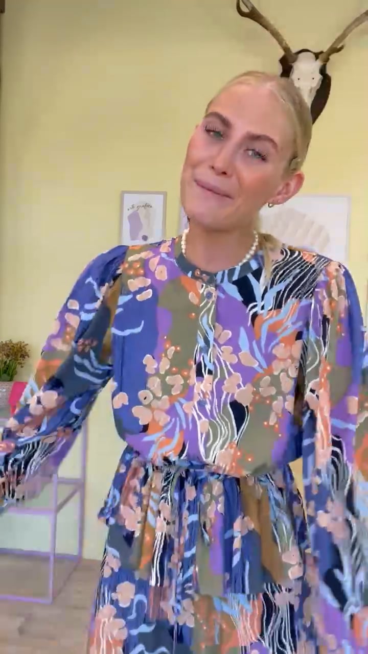 Den skønneste skjortebluse fra Nümph i et helt fantastisk abstrakt print. Skjorten har lange ærmer og te peplum skørt der giver den et ekstra feminint udtryk. Den knappes foran og har en fin dekorativ perleknap øverst ved halsen. Der er elastik i ærmerne der giver en lille baløneffekt og den kan snørres ind i taljen efter ønske.