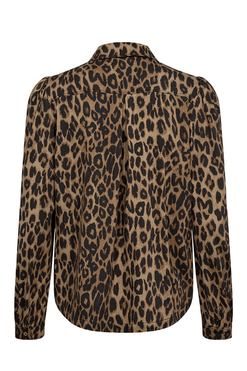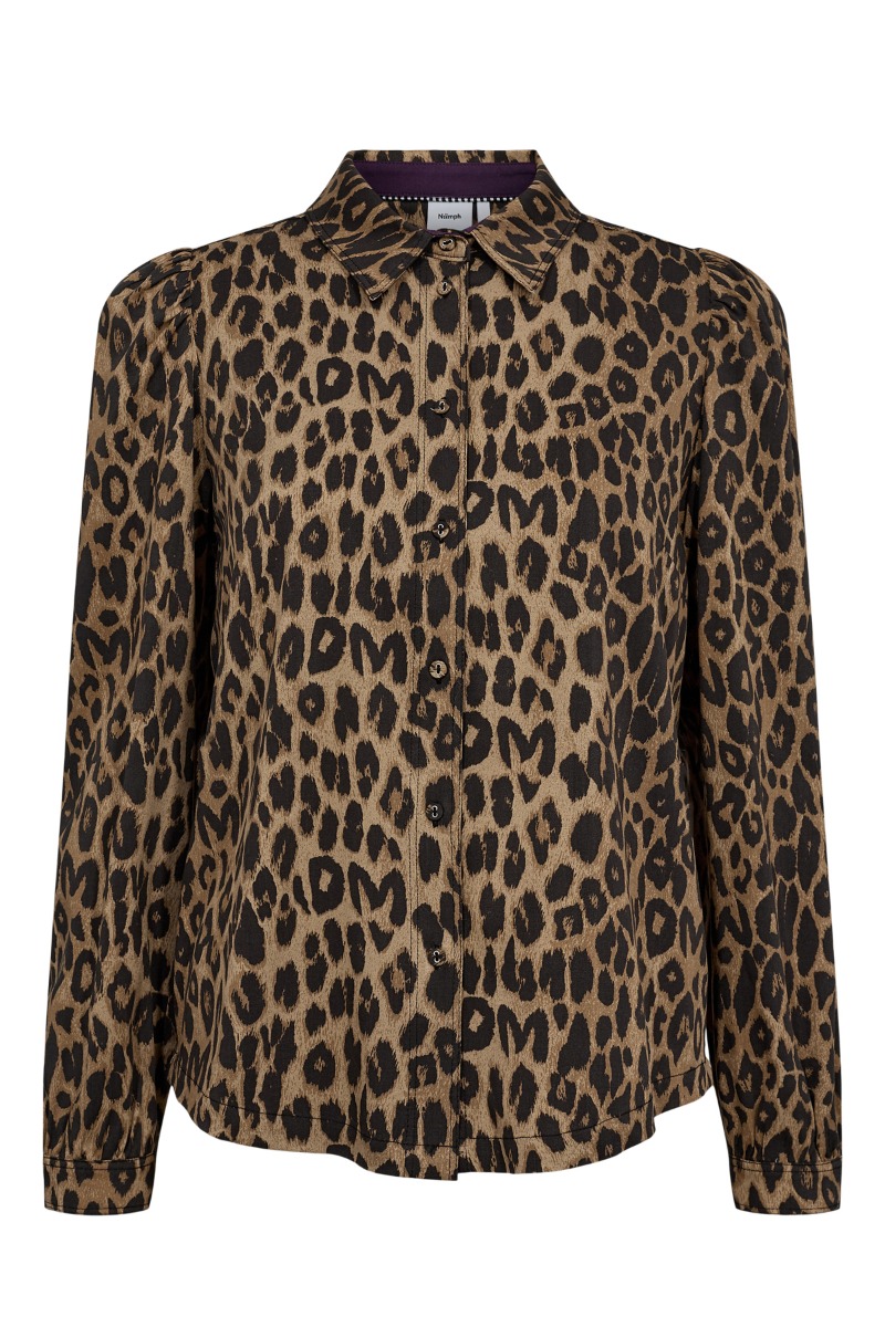 En super smart skjorte fra Nümph er lige landet i det smukkeste leopardprint! Skjorten har et helt klassisk snit med knapper hele vejen ned samt ved ærmet. Ærmerne begynder med en rynket detalje, som gør at de bliver lidt fyldigere ved skuldrene.