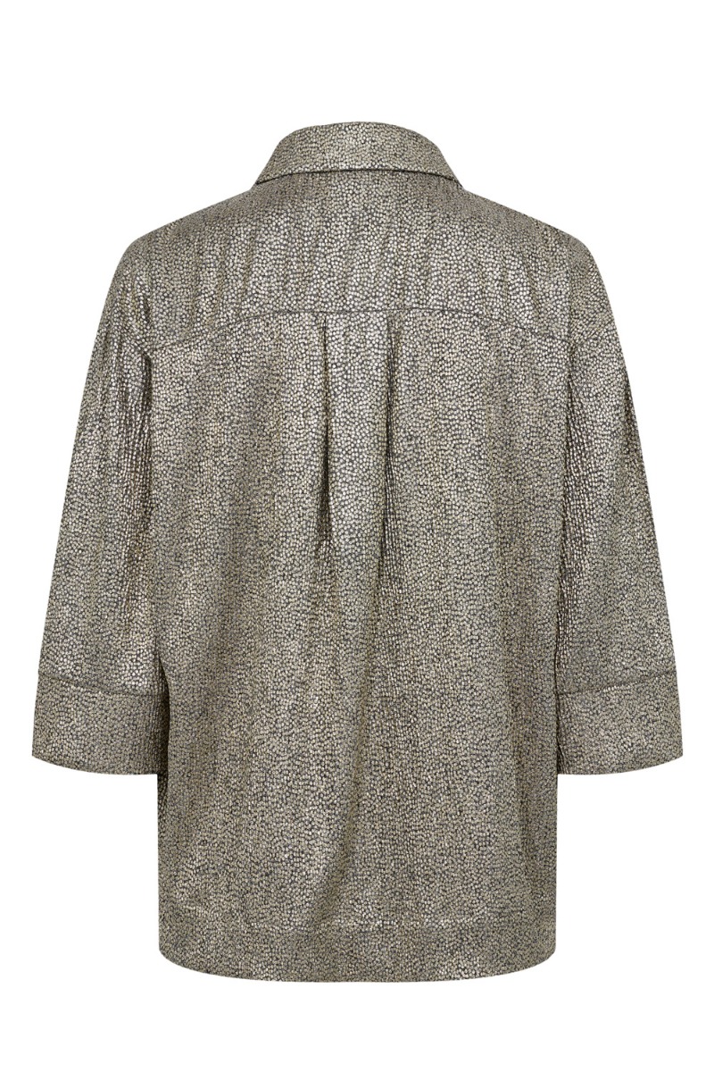 En smuk skjorte fra Nümph er kommet i en smuk guldfarve. Den er i den blødeste kvalitet og kan nemt bruges med den matchende underdel. Den er klassiske skjorte detaljer og har 2/4 lange ærmer. Perfekte med en nederdel til fest eller et par shorts til hverdag.
