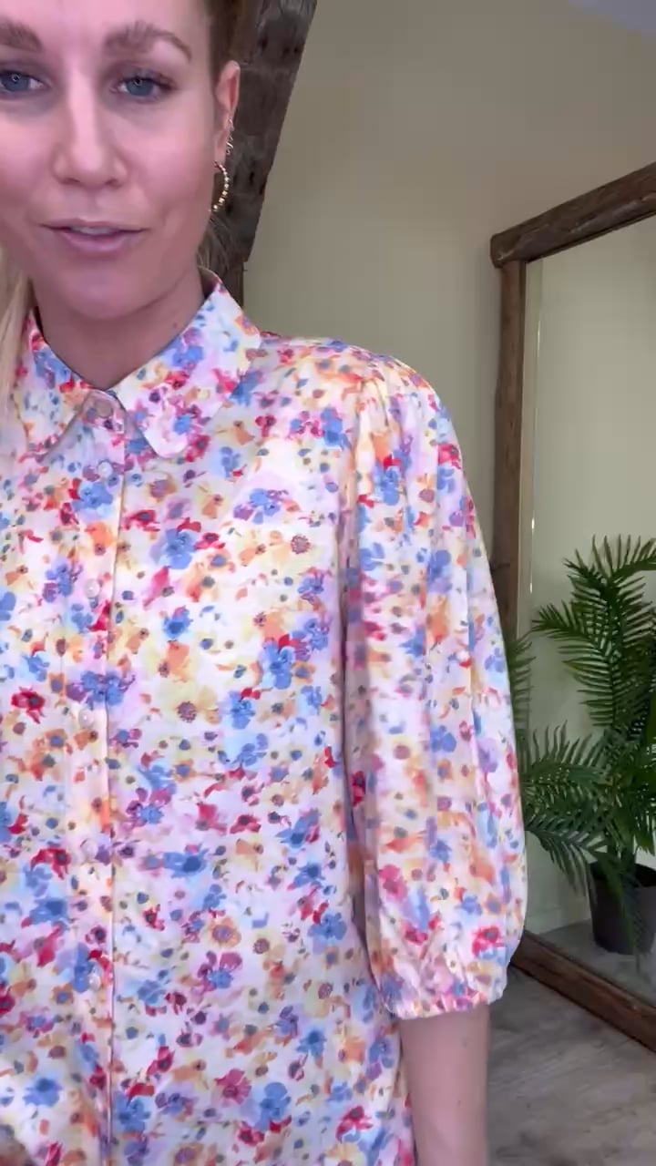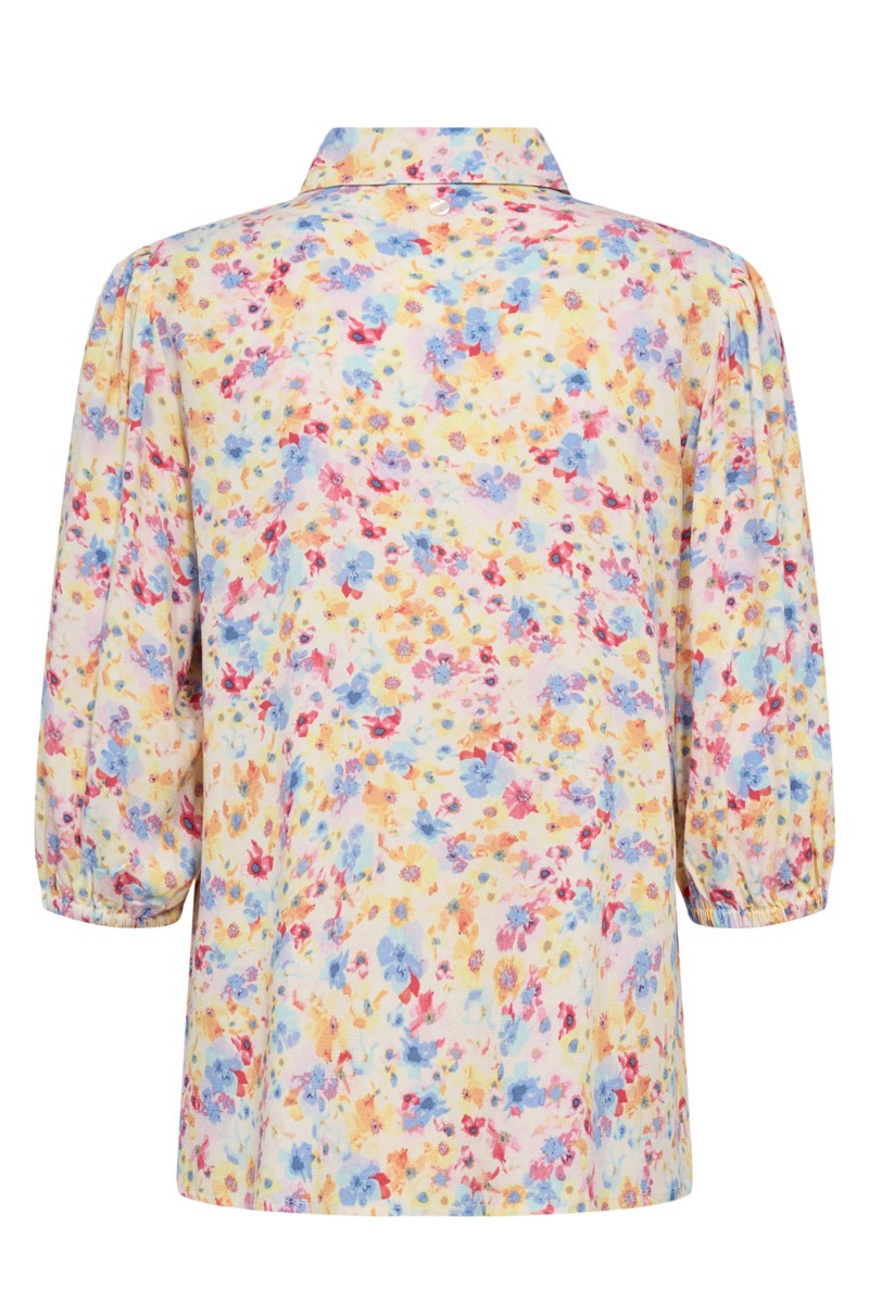 En smuk skjorte i et rigtig sommer print er landet fra Nümph. Den er i en dejlig let kvalitet og har klassisk skortekrave med knapluking foran. Derudover er den med 3/4 lange æerme som afsluttes med en elastikkant der giver denne lille balloneffekt.
