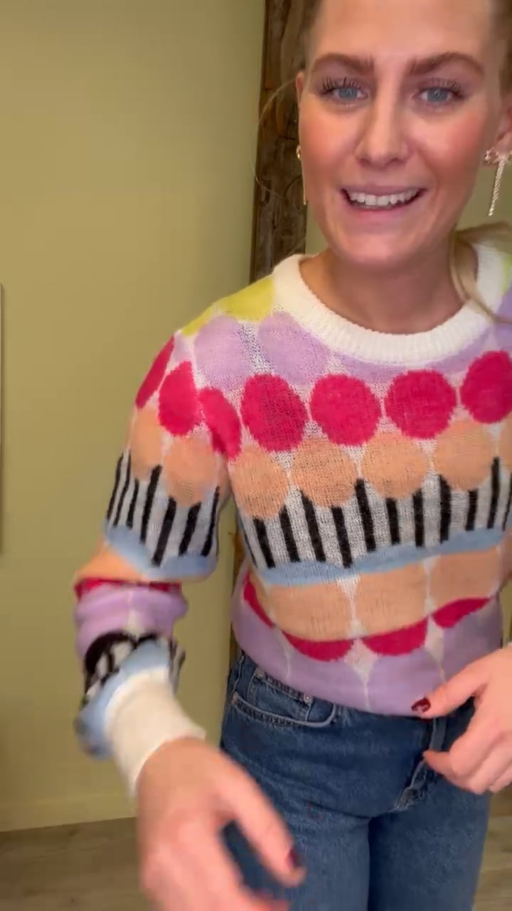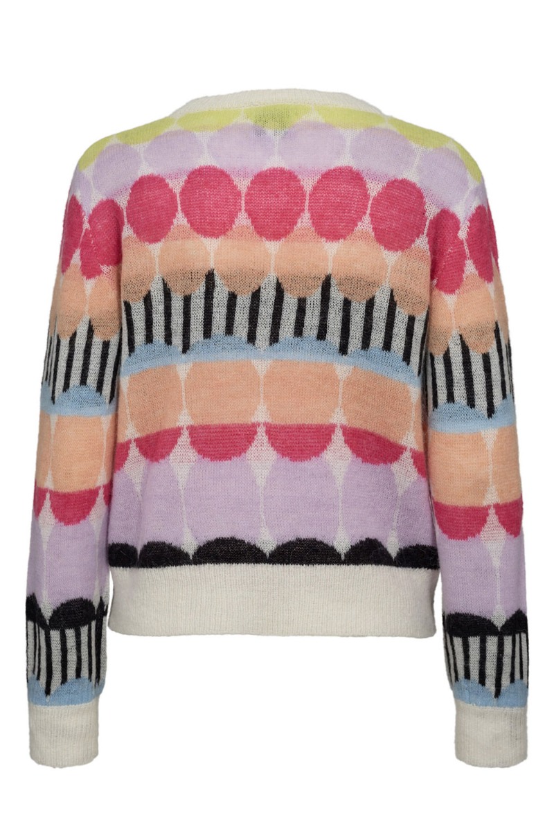 En fin strik fra Nümph er kommet i skønne nye farver som er klar til foråret. Den er løs i pasformen og let i kvaliteten. Dog er den en smule gennemsigtig, derfor anbefaler vi at du bruger en top under. Den fine print, gør den feminin og let i udtrykket og kan sagtens bruges til en sommeraften.