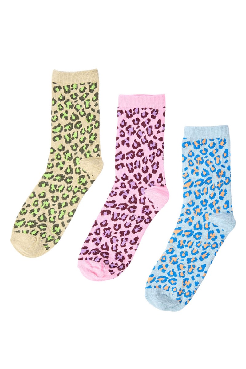 De SKØNNESTE strømper fra Nümph som altid kommer i de fineste æsker hvor der ligger tre forskellige par i. Denne æske indeholder tre par leopard strømper. En i beige med lime prikker, en blå med orange leo og selvfølgelig en lyserød med lilla prikker.