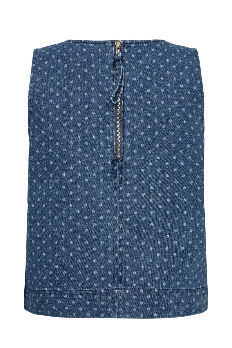 En sød denim top fra Nümph. Toppen har en dejlig kvalitet og behagelig pasform. Som detalje har den lyseblå prikker. Style den evt. sammen med denim bukser eller en fin nederdel.