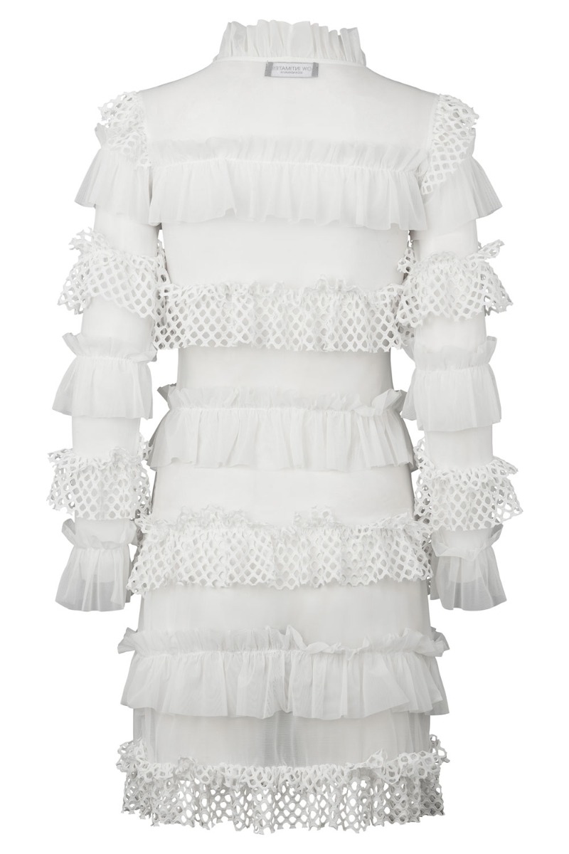 Den FINESTE smukke hvide kjole fra OW Collection. Kjolen er med de flotteste unikke detaljer med blonde og flæse. Den er i et gennemsigtig materiale og super stretchy med lange ærmer. Den kan styles med en body under og hvis man synes det bliver for bart kan du nemt smide en underkjole under.