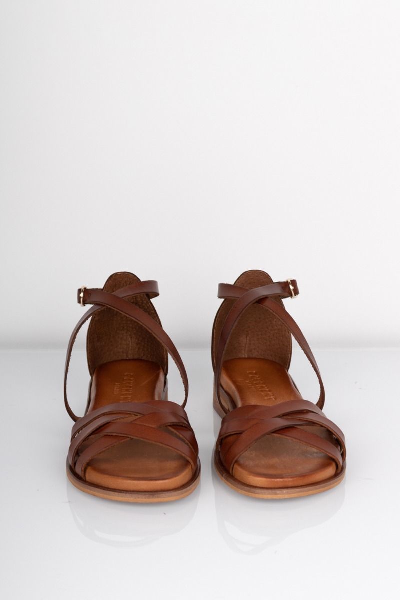 Super smuk og meget behagelig sommersandal fra Pavement. Sandalen er designet med krydsende stropper foran og en krydset rem der lukkes med en lille spænde i siden. Den har en ekstra blød skumforing, der gør den super behagelig at have på.