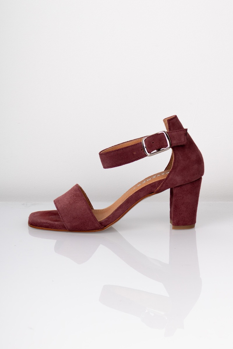 Stiletten har vi selvfølgelig lavet i en flot bordeaux nuance som er en farve der virkelig hitter! Modellen er den velkendte Sinna model som i kender den med firkantet snude, rem over vristen og justerbar rem ved anklen. Den er i en flot ruskindskvalitet med en skridsikker gummisål og perfekt højde efter vores mening.
