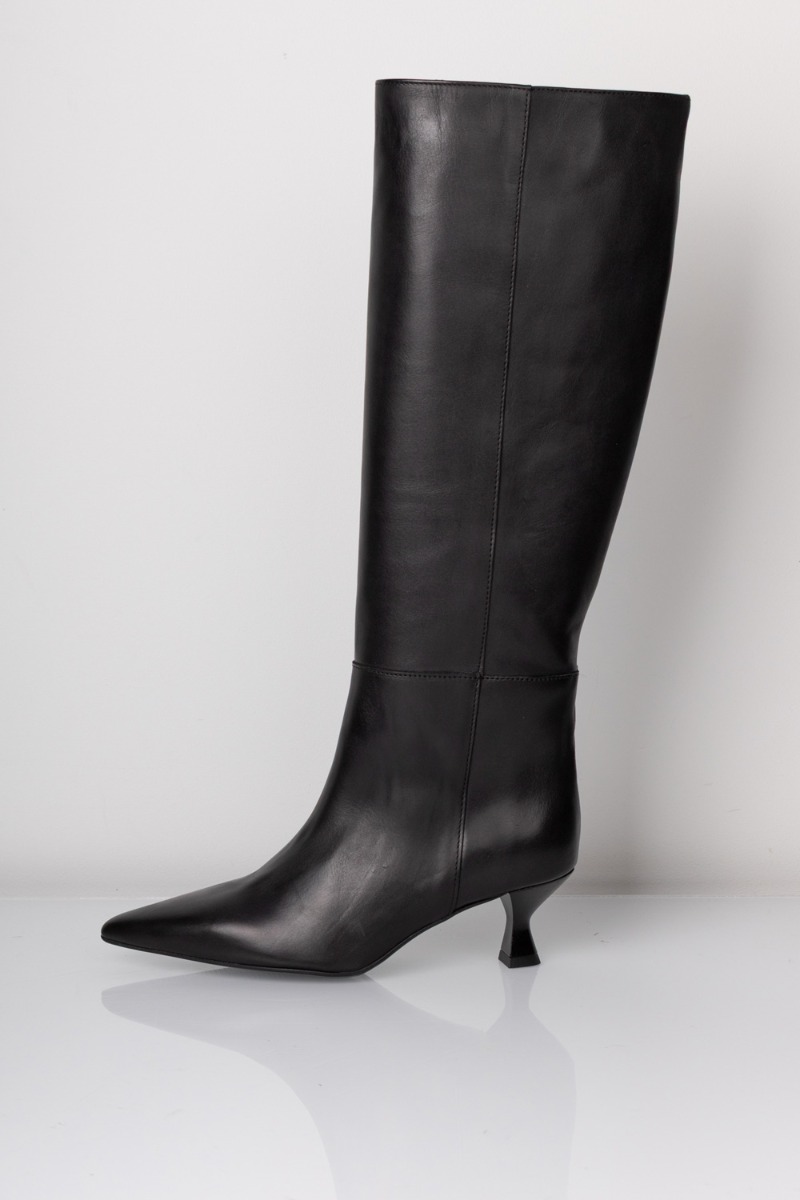 En smuk støvle fra Pavement lander her til efteråret og er perfekt til den elegante udtryk til dit outfit. Den er sort med spids snude og en lille hæl bagpå. Den lukkes på indersiden med en lynlås og er derfor også nem at hoppe i. Ligger du mellem to størrelser, anbefaler vi at du tager den største.