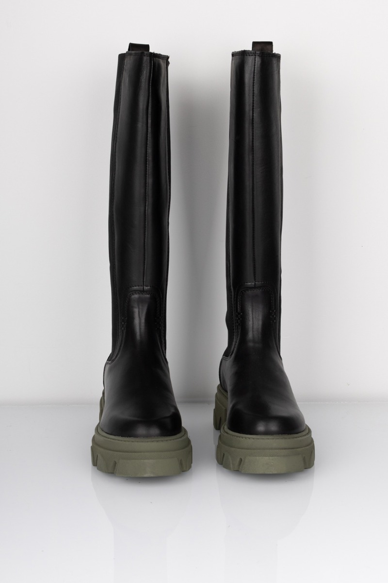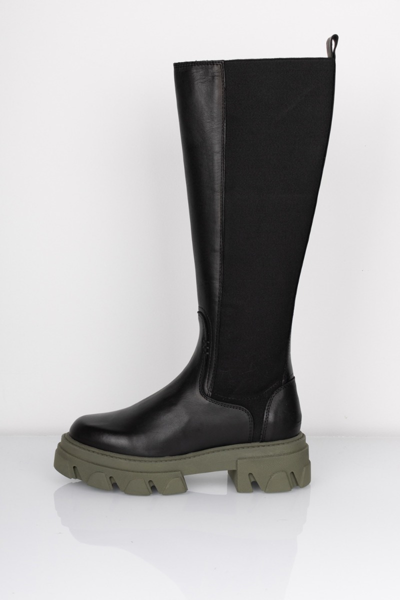 Beatrice støvlen fra Pavement er og bliver simpelthen bare et MUST i sin skogarderobe! Basta! Støvlen har et langt skafte, som giver det fedeste look og samtidigt holder benenene varme i de kolde sæsonner. Støvlerne er i sort læder med armygrøn gummisål. Støvlerne har desuden elastikbånd op langs skaftets inder- og ydersider hvilket giver dem et perfekt fit på benene.