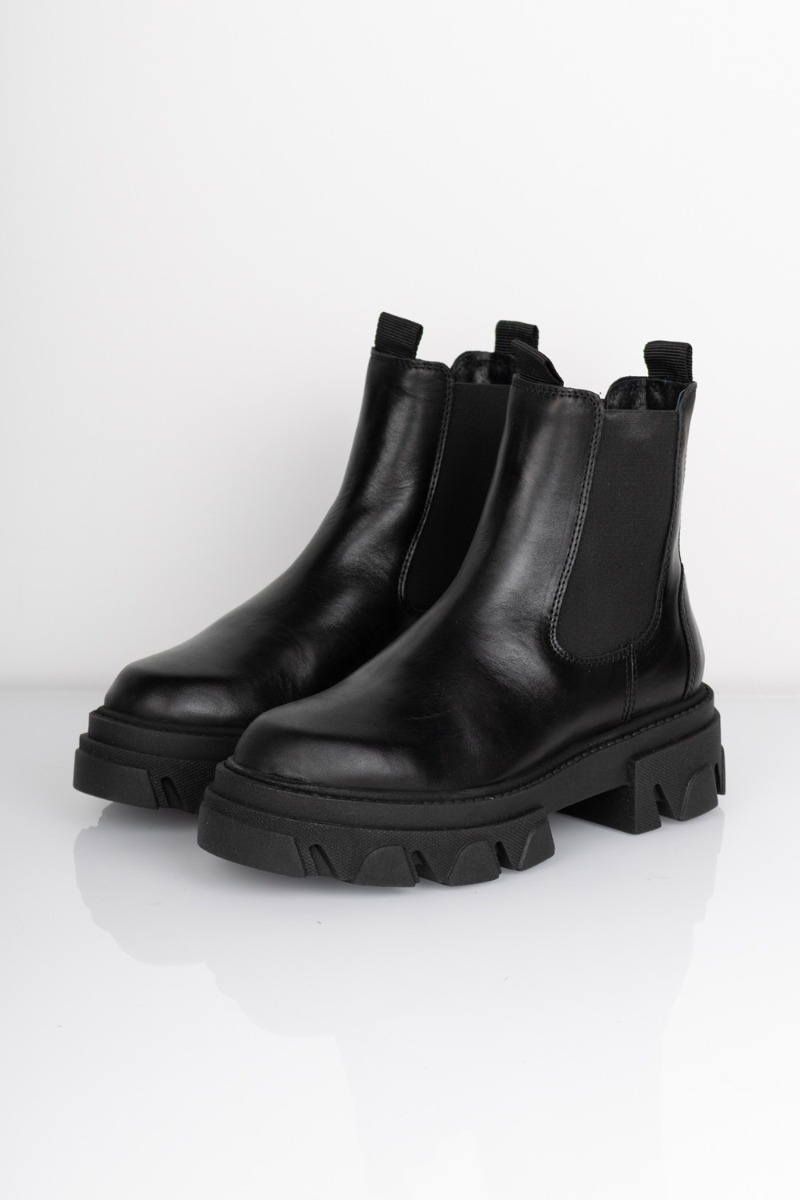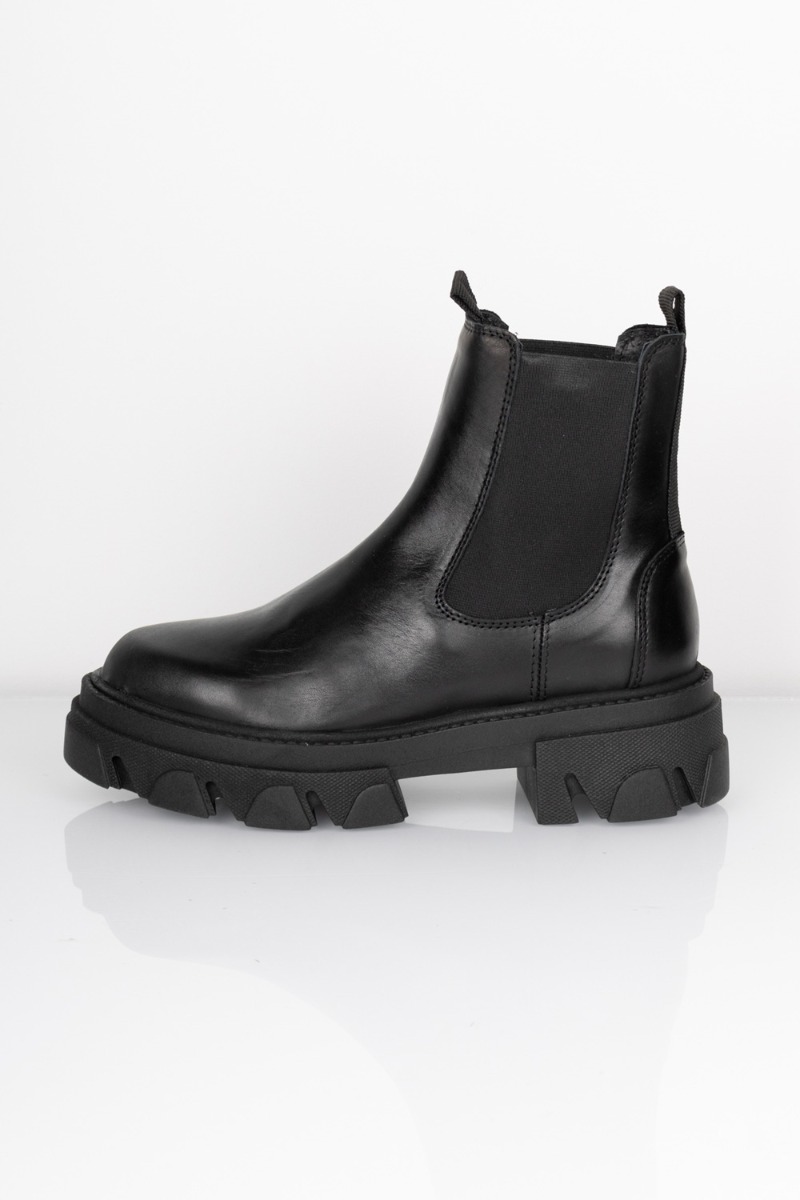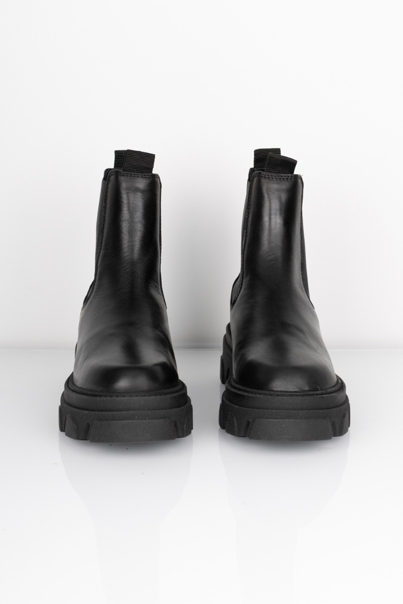 Fantastisk cool chelsea boots med en rå og chunky gummisål fra Pavement. Støvlerne har elastik i begge siderog en lille strop både or og bag. Der er altså tale om et par rigtig MUST HAVE støvler der ikke er til at komme udenom, da de er perfekte at style til både bukser og kjoler.