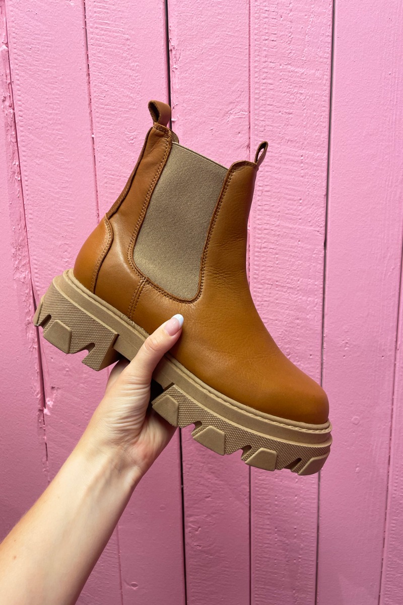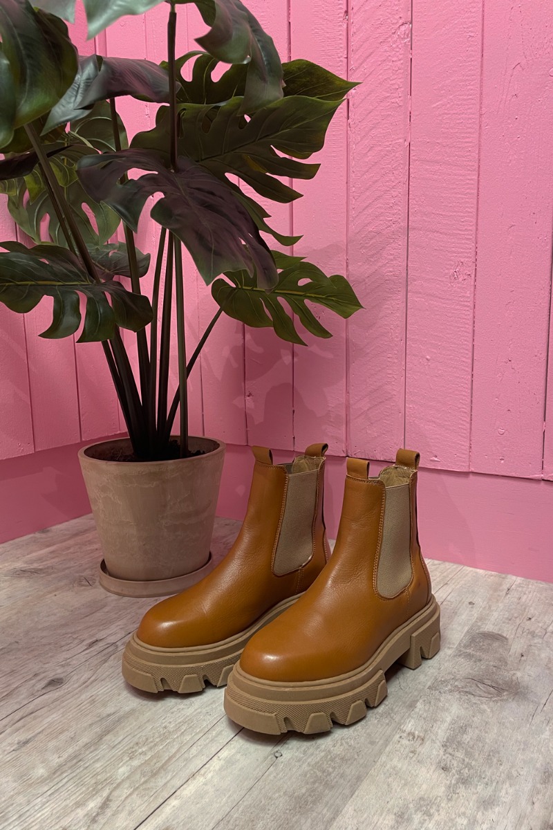 Lækre lysebrune støvler ned elastik fra Pavement. Støvlerne har en chunky bund i lys gummi der giver støvlerne et cool og unikt look. De er virkelig behagelige at have på. Kan styles til både bukser og kjoler.