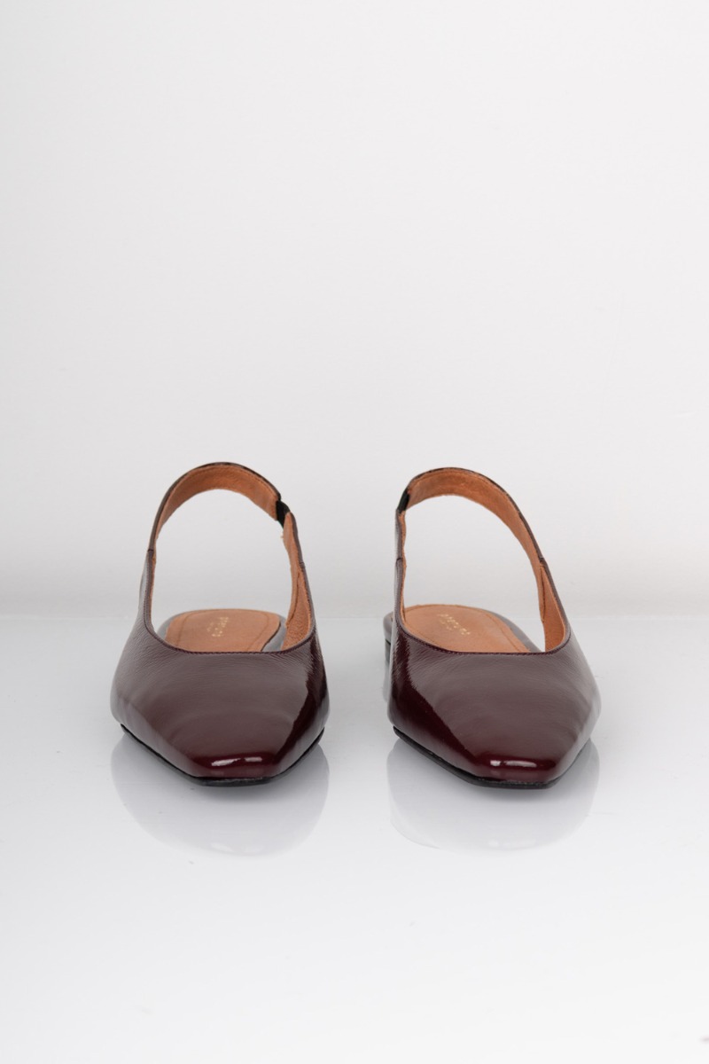 En perfekt ballerina i den populærer bordeaux farve fra Phenumb er landet i dette lak look. Den er med spids snude og har slingback bagpå. Den er god i pasformen og har en lille hæl bagpå. Derfor er den også fin til en fest eller til hverdag til at give dit outfit lidt ekstra.