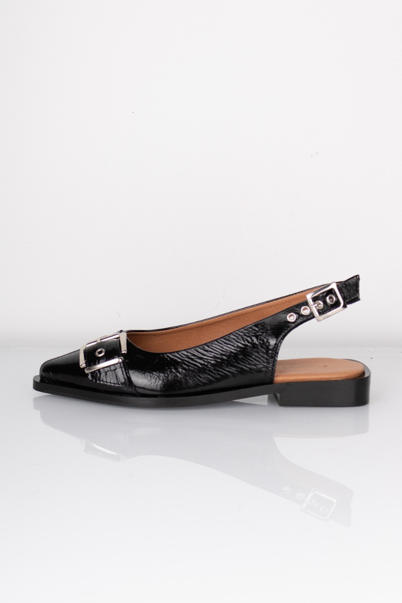 De sejeste ballerinaer fra Phenumb! De er med slingback rem bagtil, så du selv kan spænde dem til efter eget ønske. Der er spændedetalje over tåen, som giver dem et råt og cool look. Sålen er blød og behagelig at have på og de er helt normale i størrelsen. De findes også i rød og er ET MUST til garderoben her til foråret!