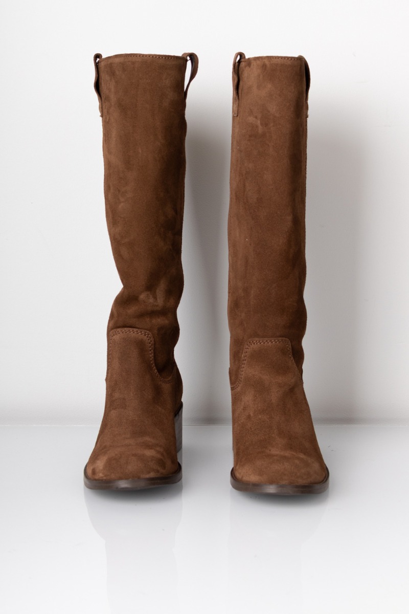 Disse knæhøje støvler frda Phenumb i en varm brun ruskindskvalitet kombinerer klassisk stil med komfort. Designet er enkelt og elegant, uden unødvendige detaljer, hvilket gør dem utroligt alsidige i garderoben. Den solide blokhæl giver en behagelig højde til hverdagsbrug, mens den bløde ruskindsoverflade tilføjer et luksuriøst og tidløst udtryk. Perfekte til både kjoler og jeans – og et stilfuldt valg gennem efterårs- og vintersæsonen.