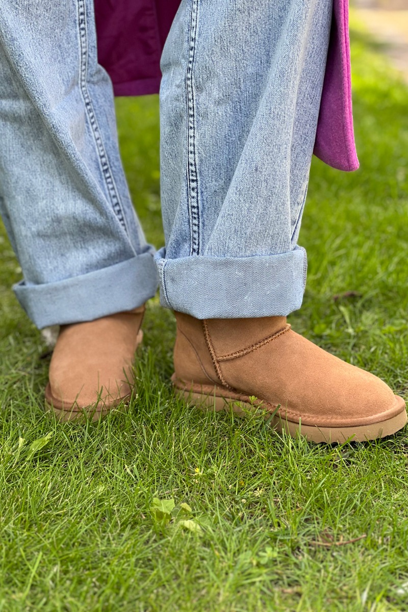 Yay... de SKØNNESTE bamsestøvler fra Phenumb. Et MUST HAVE hvis du spørger os! De er i den bedste ruskindskvalitet i lysebrun farve. De er designet med den blødeste lammauldsfor, som virkelig gør dem fantastiske at have på. Så døjer du med kolde fødder, eller elsker når de har det dejlig lunt – så må du eje disse og samtidigt være med på årets helt store "bamsestøvle"-trend. Styl dem til efteråret og vinterne til både nederdele, bukser og jeans.