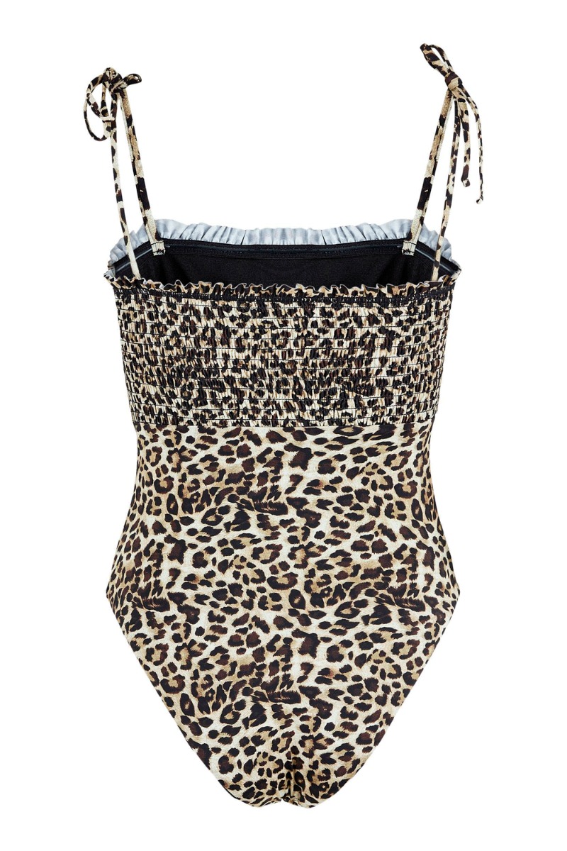 Jaaaa LEO også i en badedragt!!! Den skønneste badedragt fra Pieces er landet i LEO print! Badedragten er med smock ved brystet, hvilket giver en FANTASTISK pasform! Den har tynde stropper som nemt kan åbnes og styles på en anden måde.