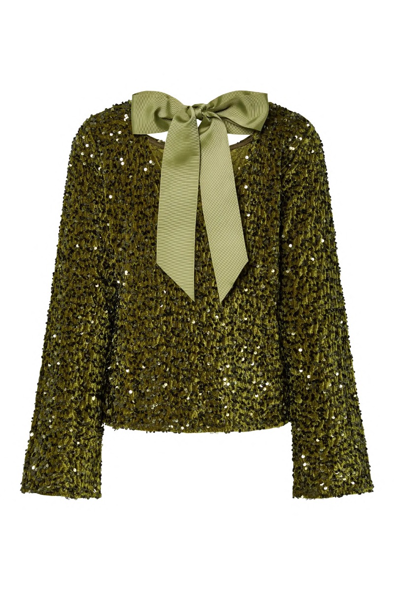 Pieces - Bluse - Kam LS Deep Back Bow Top - Kalamata sequins