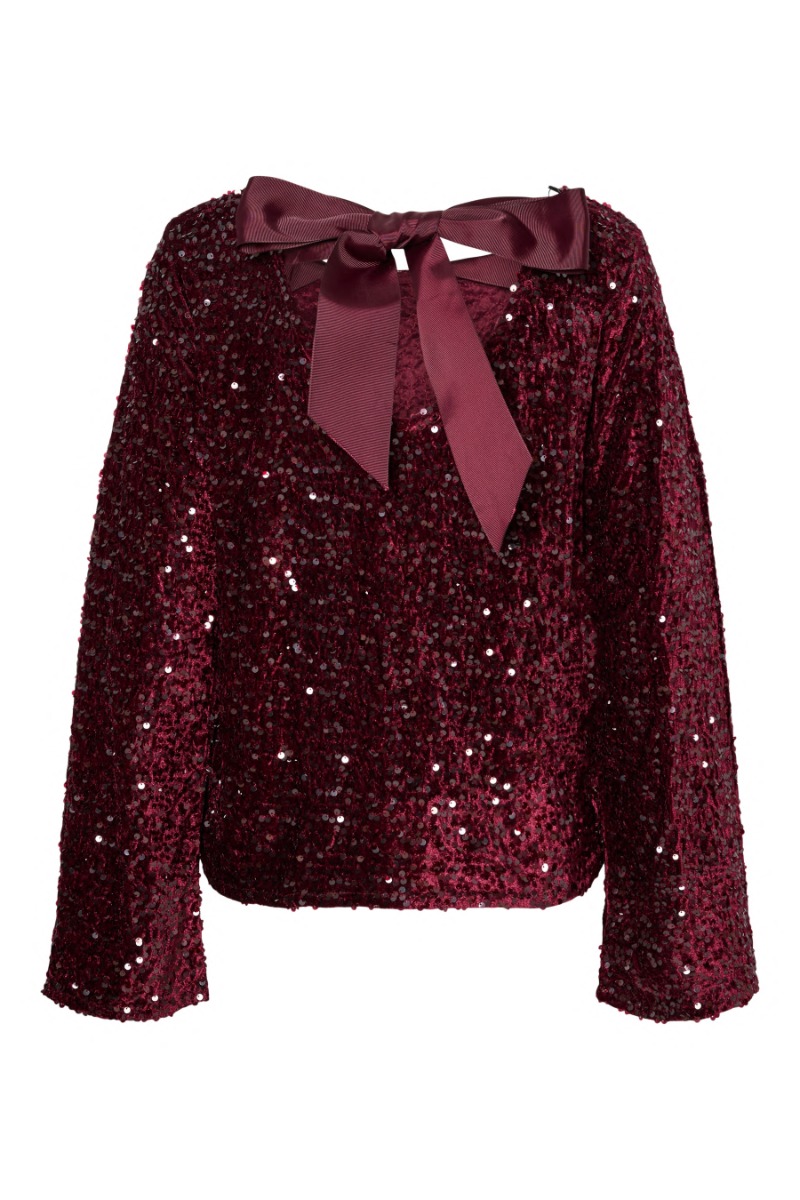 Pieces - Bluse - Kam LS Deep Back Bow Top - Tawny Port