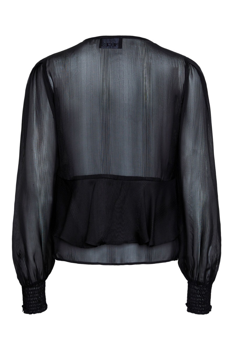 Pieces - Bluse - Pc Dubine Ls V-Neck Bow Top - Black