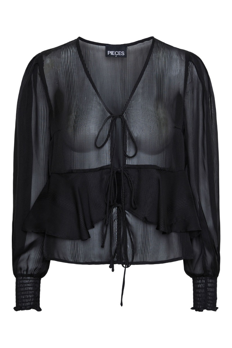 Sød bluse fra Pieces i mesh med lille flæsedetalje i bunden.