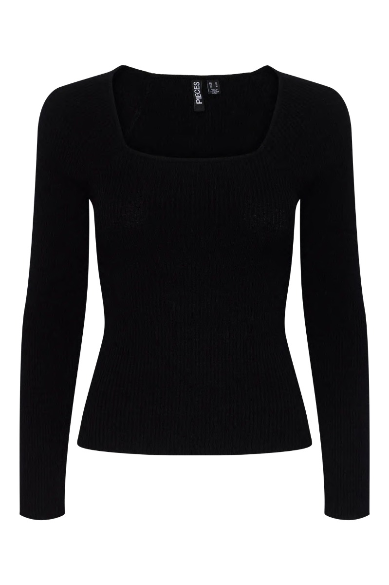 Pieces - Bluse - Pc Kalu Ls Square Neck Rib Knit Top - Black