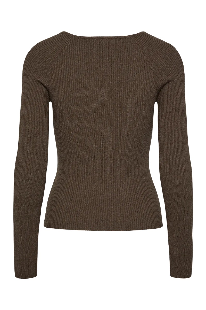 Pieces - Bluse - Pc Kalu Ls Square Neck Rib Knit Top - Morel