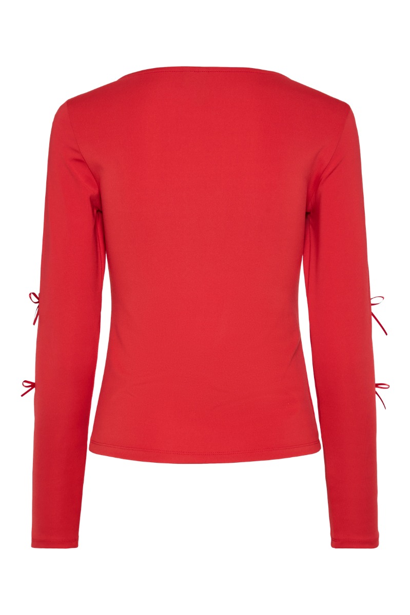 Pieces - Bluse - Pc Selina Ls O-Neck Bow Top D2D - High Risk Red