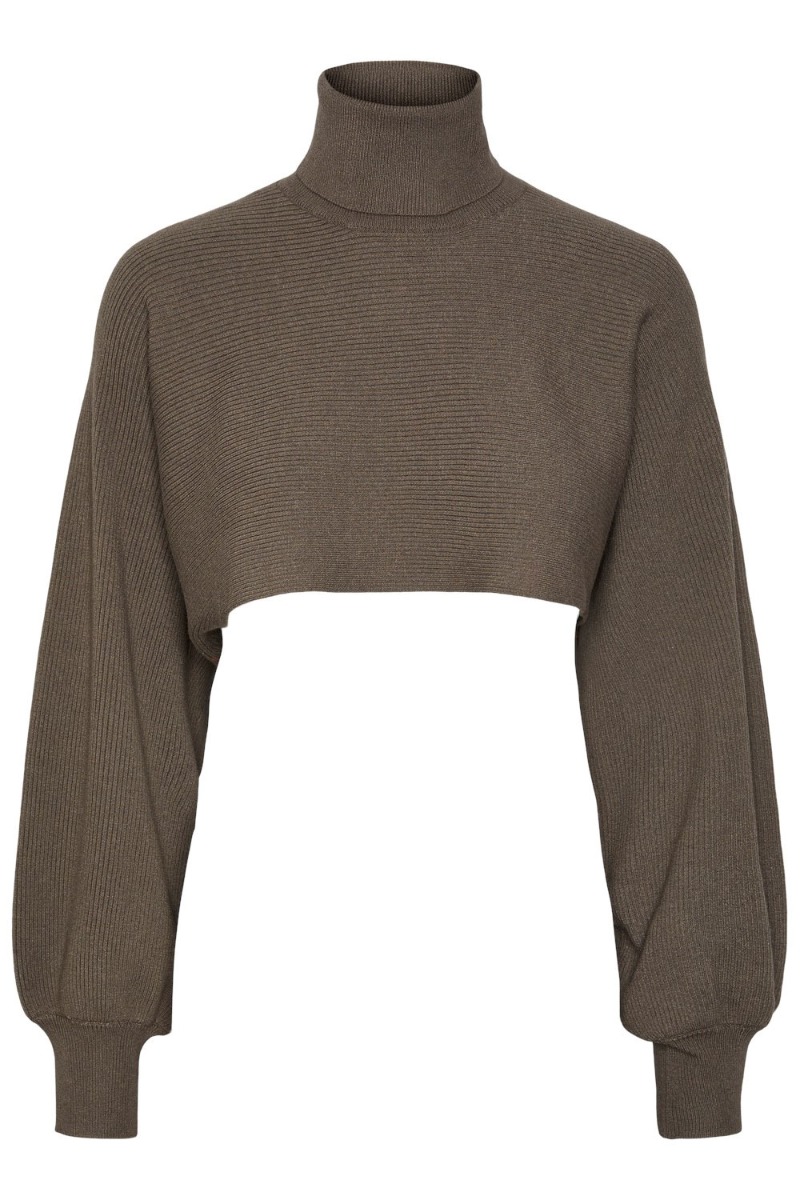 Pieces - Bluse - PC Sue LS Roll Neck Crop Arm Warmer - Morel