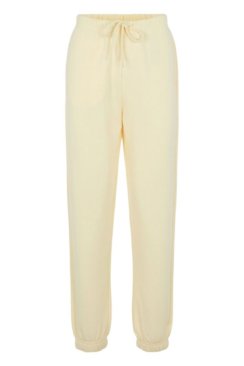 Pastel gule sweatpants fra Pieces i det blødeste materiale der er helt fantastisk at have på dagen lang. Bukserne er højtaljet med elastik og snøre i livet og afsluttes med elastik ved anklen. Style dem med den matchende hoodie for et hyggeligt afslappet look.