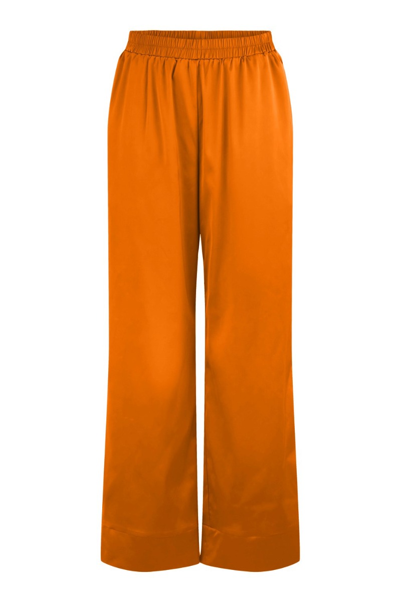 Shop de flotteste bukser fra Pieces i orange/rust farve med det lækreste shiny silkelook. Bukserne er perfekte at matche med skjorten i samme farve. Der er god vidde i buksebenene, som gør at de simpelthen bare er SÅ behagelige at have på hele dagen.