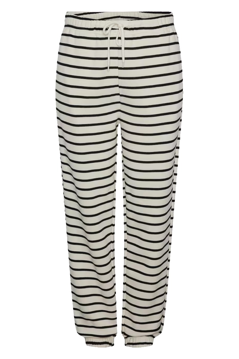 Pieces - Bukser - PC Chilli HW Sweat Pants Stripes - Cloud Dancer/Black