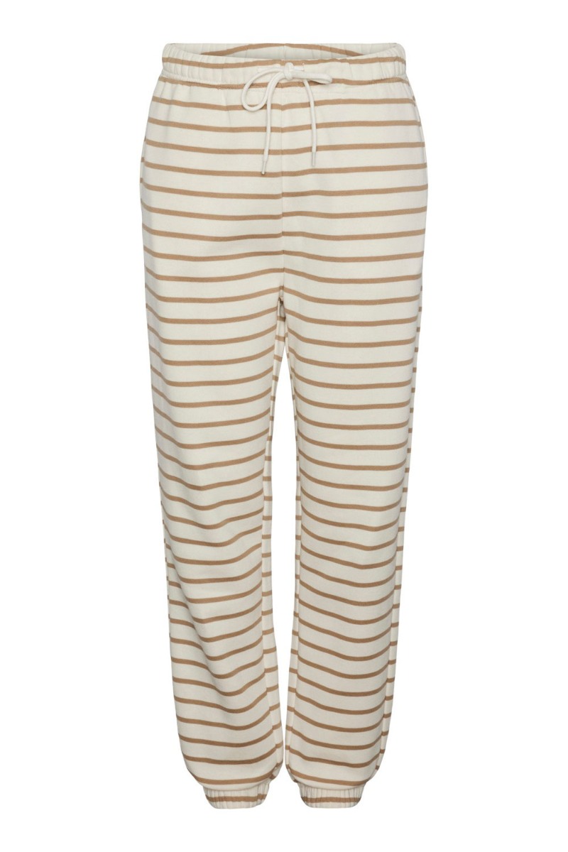 Pieces - Bukser - PC Chilli HW Sweat Pants Stripes - Cloud Dancer/Silver Mink