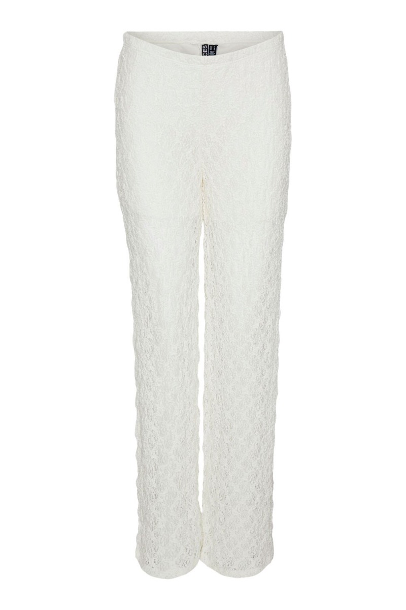 Pieces - Bukser - PC Naya HW Lace Pants D2D Jit - Cloud Dancer