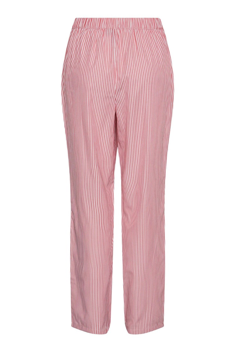 ENDELIG ER SÆTTET LANDET! Her skal i ikke vente for længe hvis i skal nå at have fingrerne i de fine stribet sæt fra Pieces. Bukserne er stribet rød og hvid med elastikkant i taljen og et let løst look der er lige i benene. Style med den matchende fine bluse i samme print.
